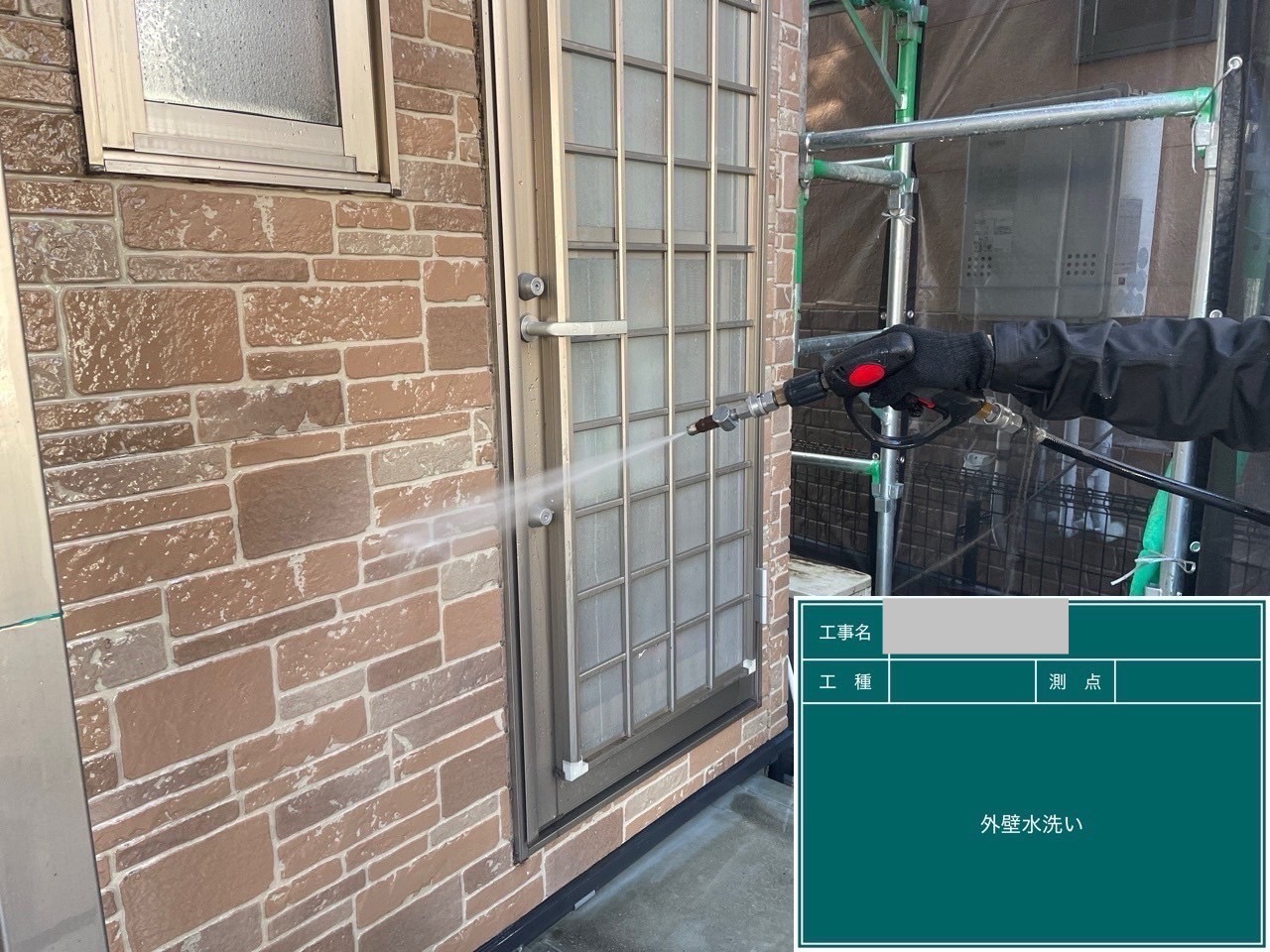 その後、建物全体を高圧洗浄。長年の汚れやコケを落としてから塗装することで、塗料の密着性が格段にアップします。