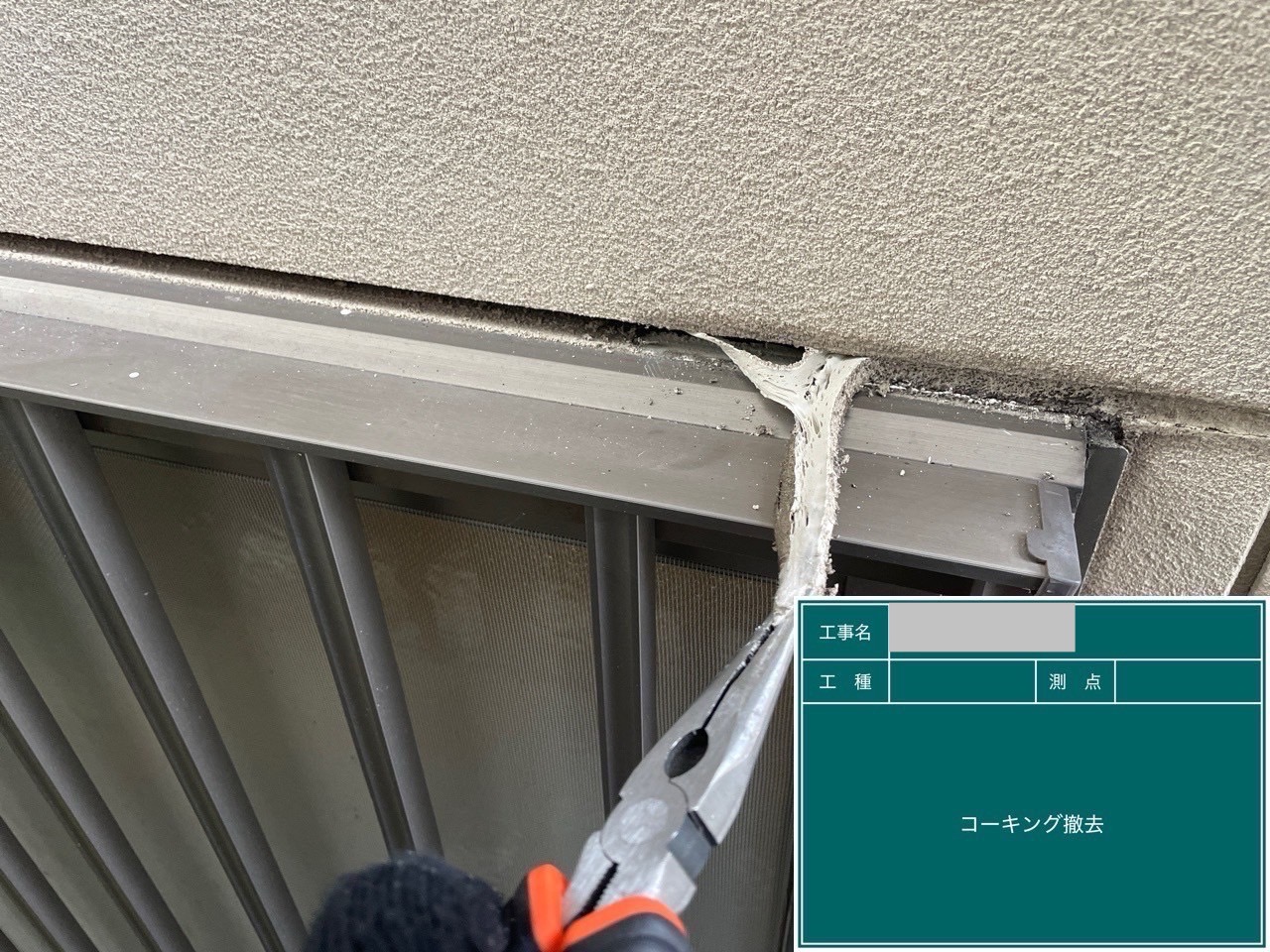 コーキングの劣化が進行すると、剥離やひび割れを起こし、雨水の侵入リスクが高まります。こちらも撤去・打ち替えをご提案しました。