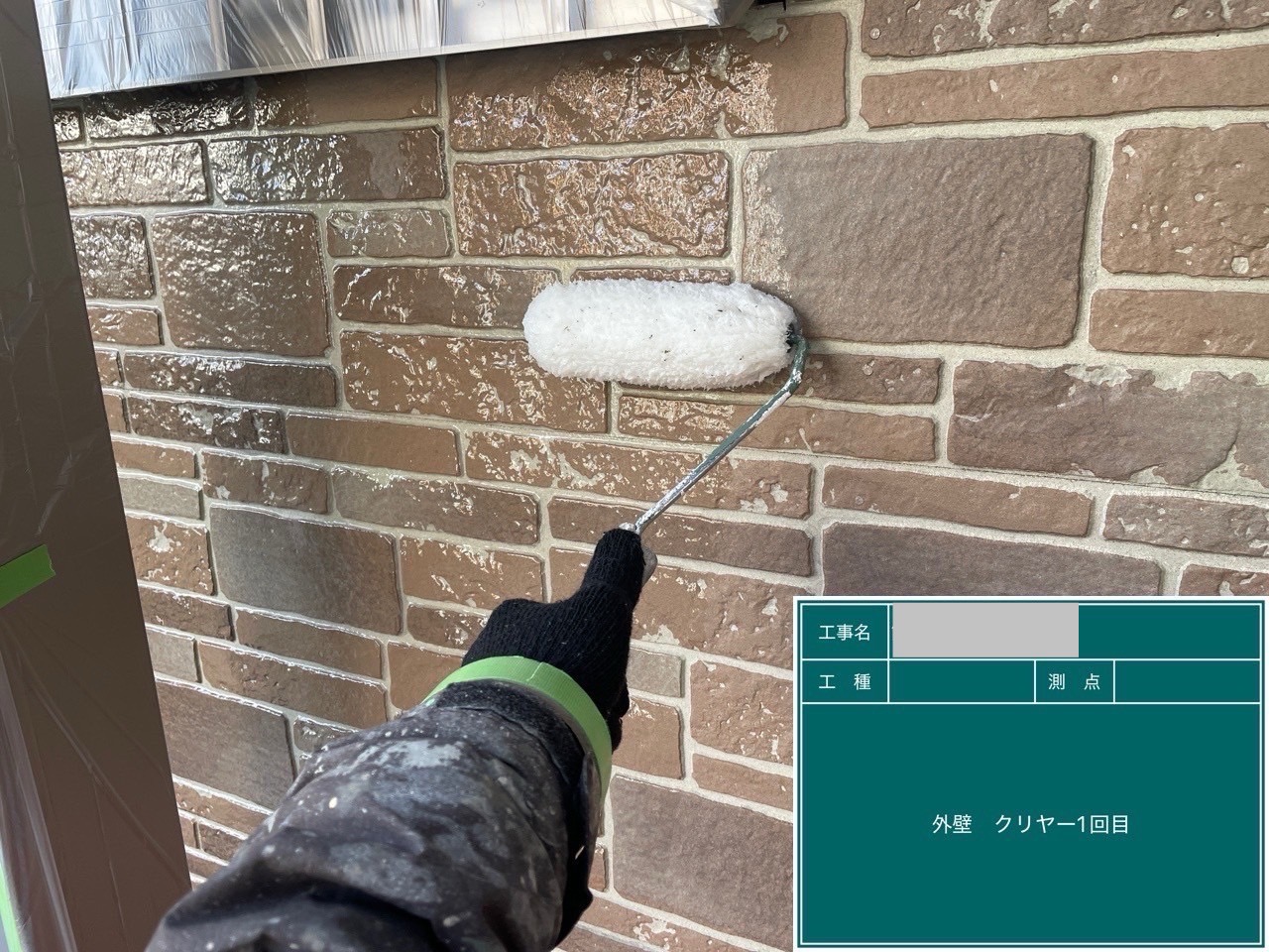 加えて、外壁の北面1階部分は意匠性(デザイン性)がある仕上げだったため、「塗りつぶしではなく透明なクリア塗装で風合いを残したい」というご要望をいただきました。