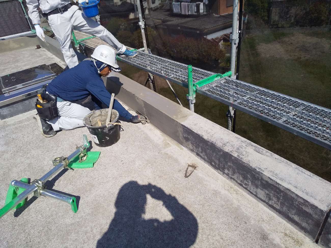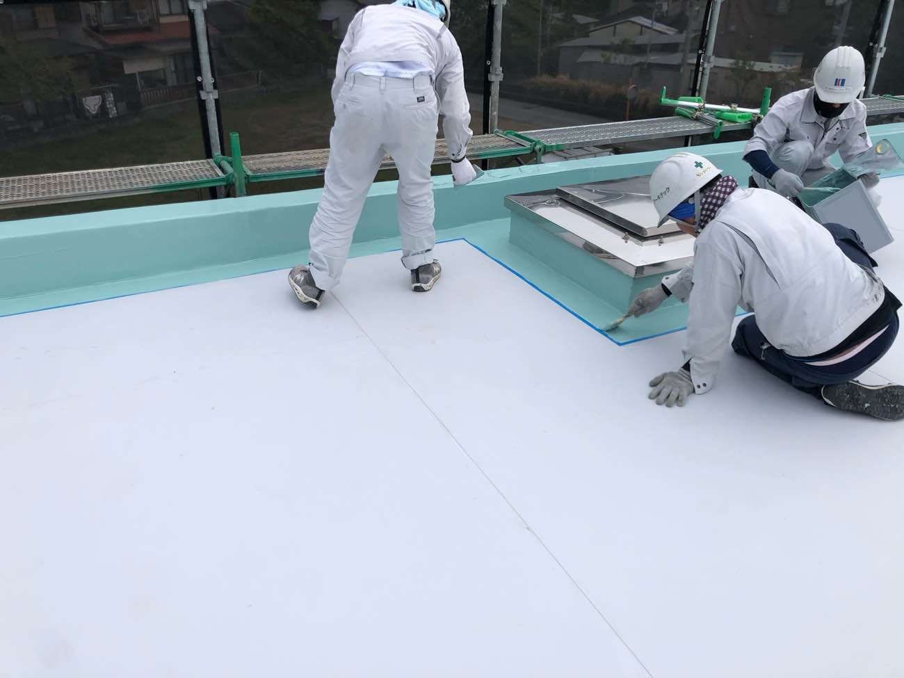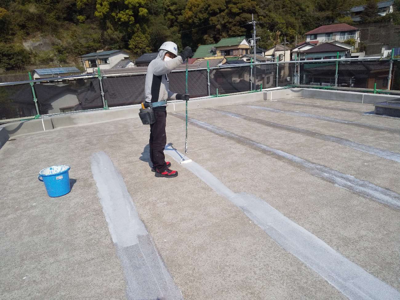 この工程は、防水工事の耐久性を左右する非常に重要な作業です。