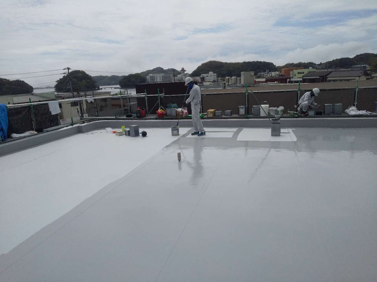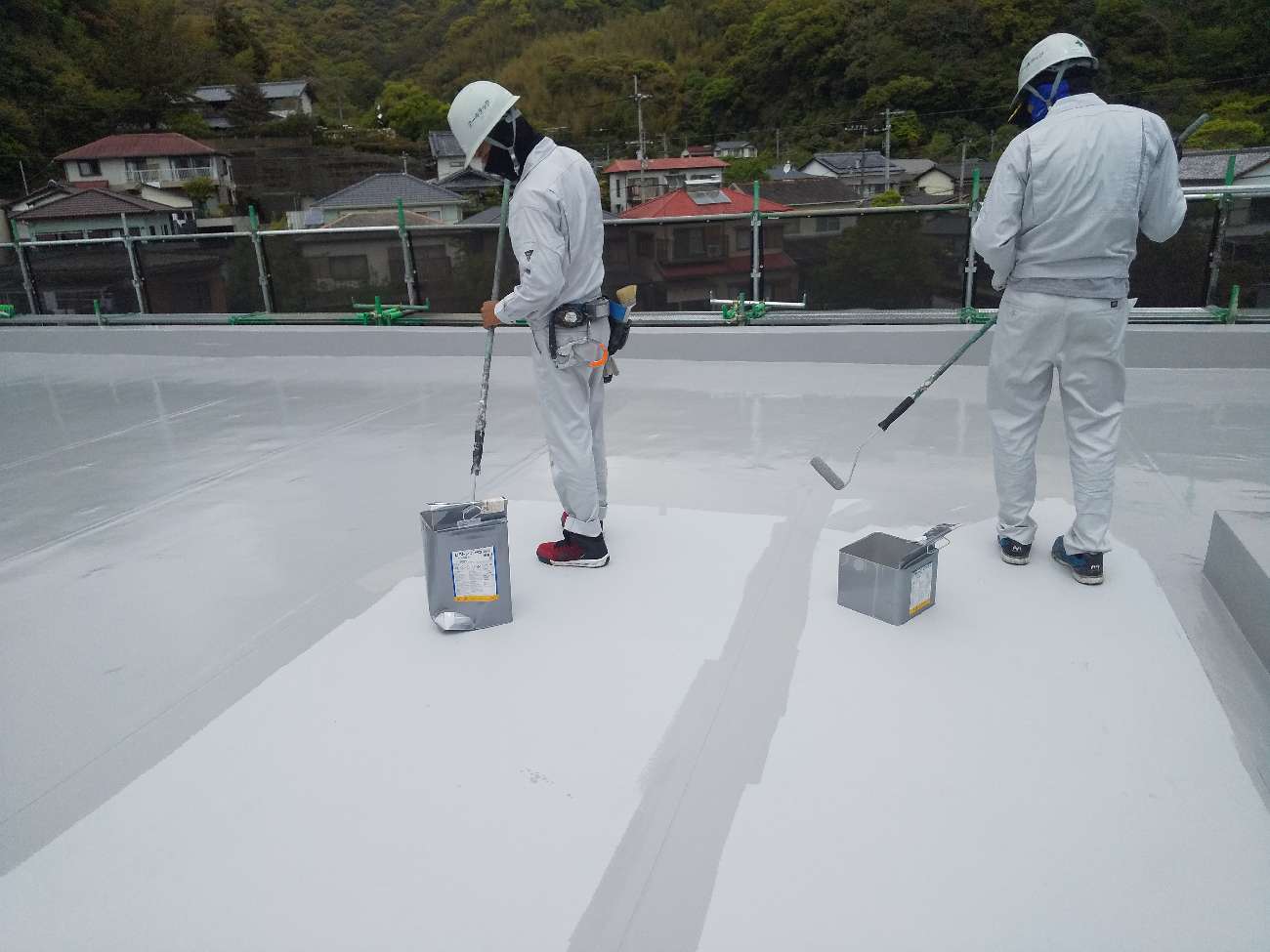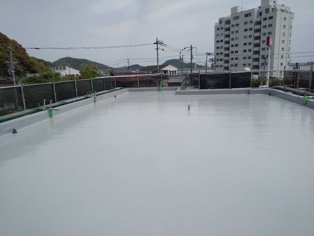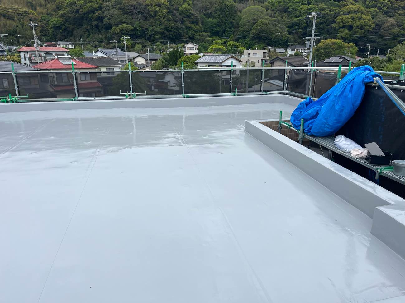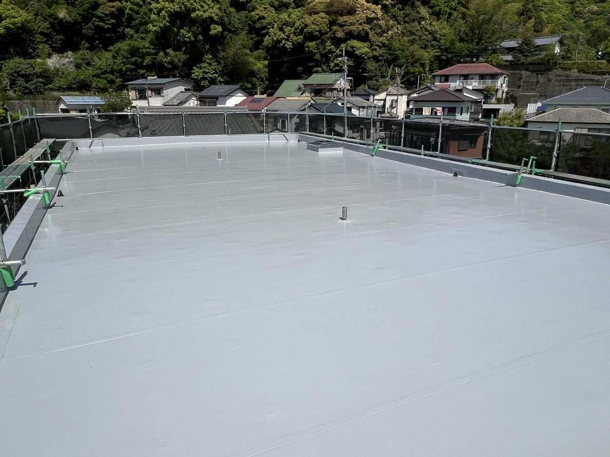 トップコートが乾燥すると、屋上全体が明るくパリッとした印象になります。