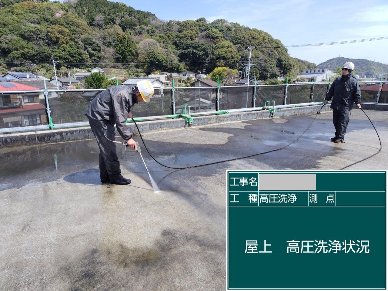 高圧洗浄機でしっかり洗い流します。