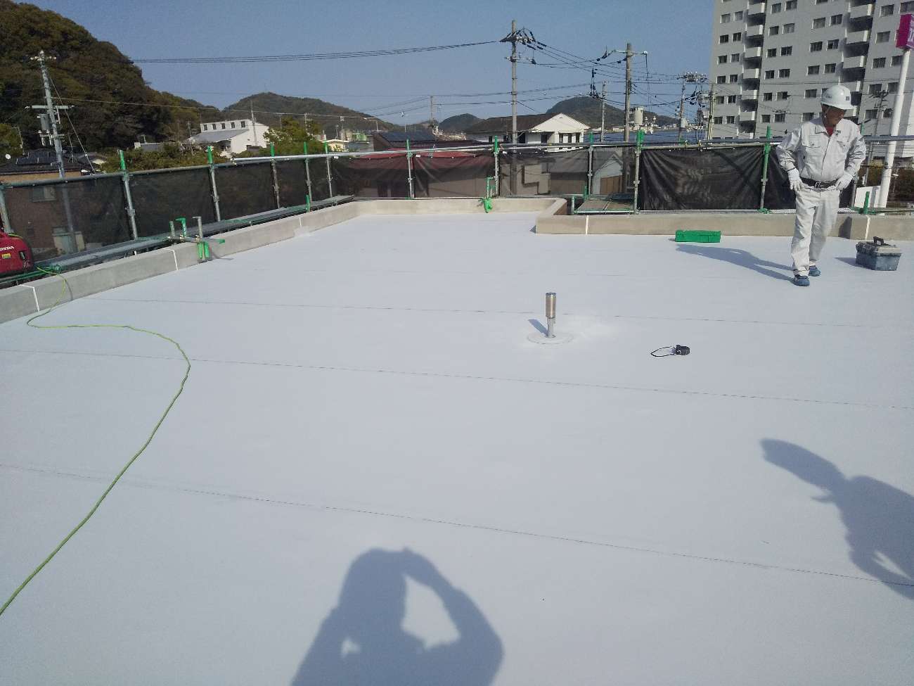 すべての工程が終わり、今回の賃貸マンション屋上防水工事が無事完了。