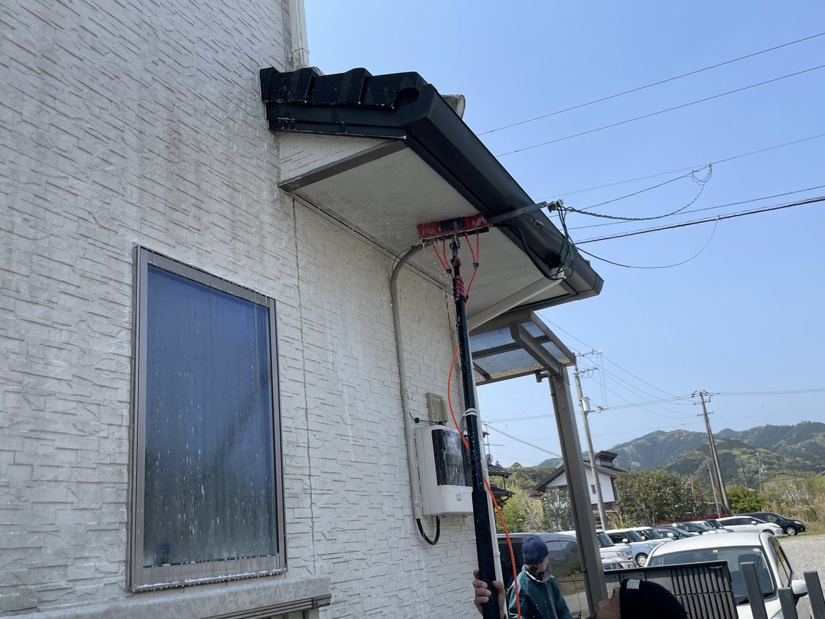 外壁だけがキレイになると、どうしても軒天の薄い汚れが浮いて見えます。
