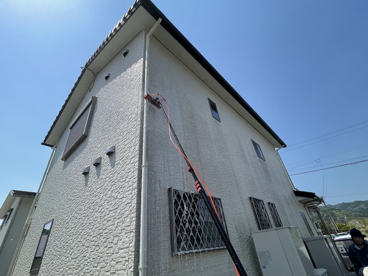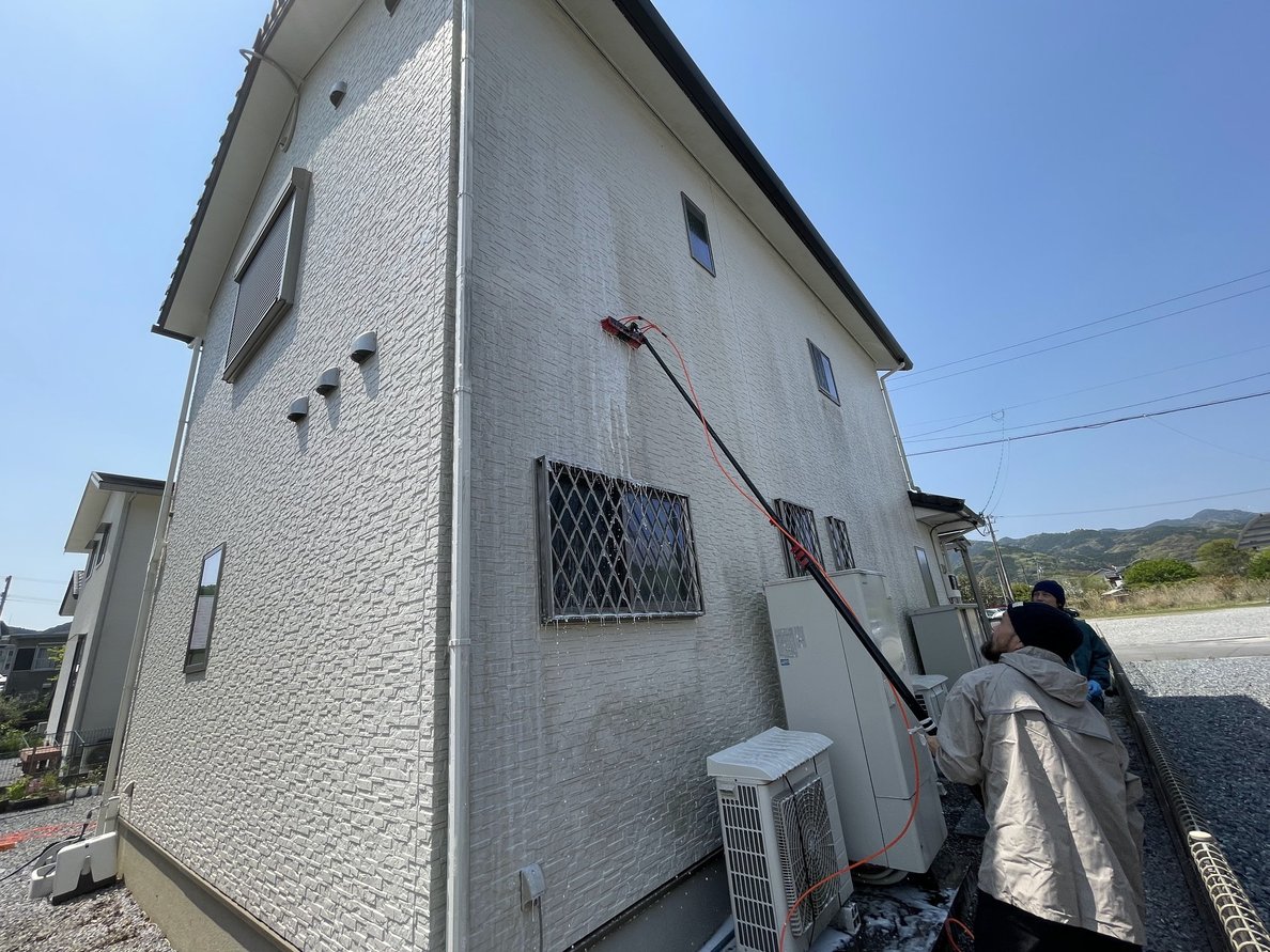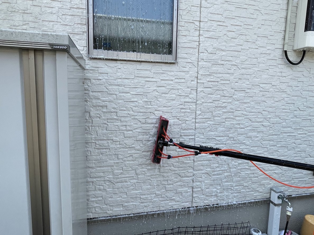 今回も、外壁に負担をかけない 低圧洗浄 を採用。